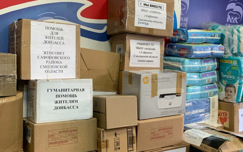Штабы по сбору гуманитарной помощи открывают и местные отделения «Единой России» совместно с районными администрациями. На данный момент гуманитарную помощь можно передать в Гагарине, Вязьме, Дорогобуже, Сафонове, Ярцеве. В Смоленске вещи первой необходимости и непортящиеся продукты принимают по адресу Карла Маркса, 14.