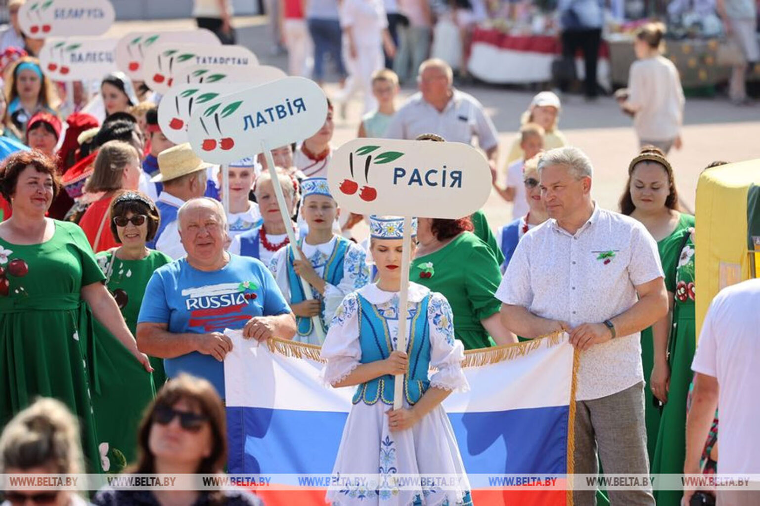География «Вишневого фестиваля» расширяется ежегодно. Неизменно на праздник приезжают белорусы со всей страны и россияне из разных регионов. Кроме этого, нынешний фестиваль посетили представители Китая, Индии, Пакистана, Азербайджана, Татарстана, Башкортостана, Латвии. В основном это граждане перечисленных стран, по тем или иным причинам проживающие сейчас в Беларуси. Латвийские гости — это представители белорусской диаспоры в Латвии. Китай здесь представляли студенты из Поднебесной, получающие образование в Белорусском государственном университете культуры и искусств. А аспирант того же вуза, китайский художник Пань Улицзы открыл в Центре традиционной культуры и народного творчества свою персональную выставку.