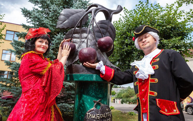 В 2013 году в Глубоком прошел первый «Вишневый фестиваль». Тогда местные жители заложили вишневый сад, высадив 1414 саженцев – по дате первого упоминания города в летописях. В том же году установили монументально-декоративную скульптуру «Глубокская вишня», которая стала одной из достопримечательностей района. Кстати, в Глубоком изображение вишни в той или иной форме встречается повсеместно.