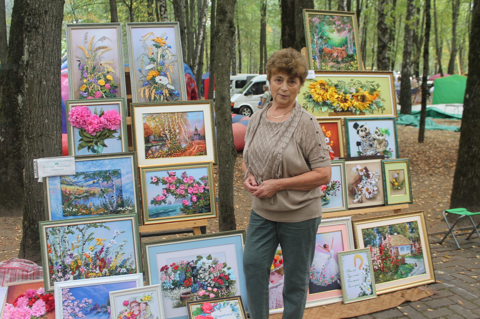 (К 1-му фото) Вот такими красочными полотнами встречали ярцевские умельцы (в их числе Александра Ворожбет) многочисленных посетителей выставки-ярмарки, открывшейся на центральной аллее городского парка.