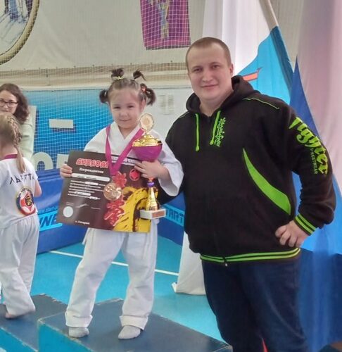 На снимке: воспитанница клуба «Торнадо» вместе со своим тренером Сергеем Глаздовым.