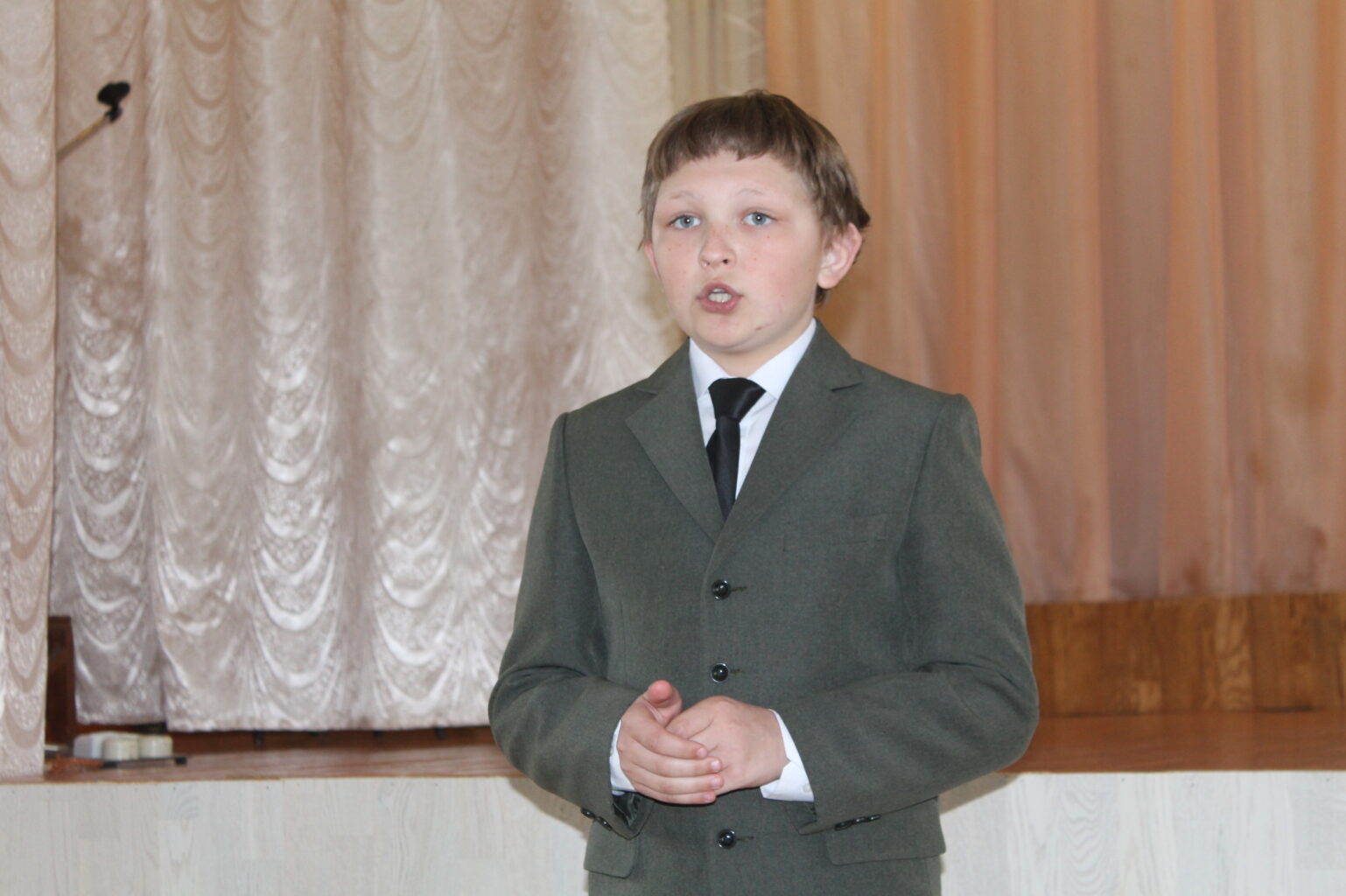 Очень симпатичным оказалось выступление Ивана Шамилова из Суетовской основной школы. Хитрец Рогов (Константин Мелихан «Заслуженная оценка»), избегающий двоек с помощью лести учителям, в исполнении Вани предстал не отрицательным персонажем, а забавным и вызывающим сочувствие мальчишкой.