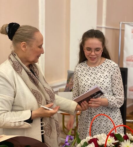 Ранее Екатерина заняла первое место врегиональном этапе конкурса и вместе с руководителем студии «Образ» Татьяной Шпилевой была приглашена Людмилой Лисюковойна творческую встречу, посвященную 70-летию со дня рождения актера, заслуженного артиста России Николая Коншина.Заслуженная артистка России, педагог, член жюри регионального этапа «Живой классики», Людмила Лисюкова высоко оценила исполнительское мастерство юной ярцевчанки и подарила Кате книгу с дарственной надписью (на снимке).