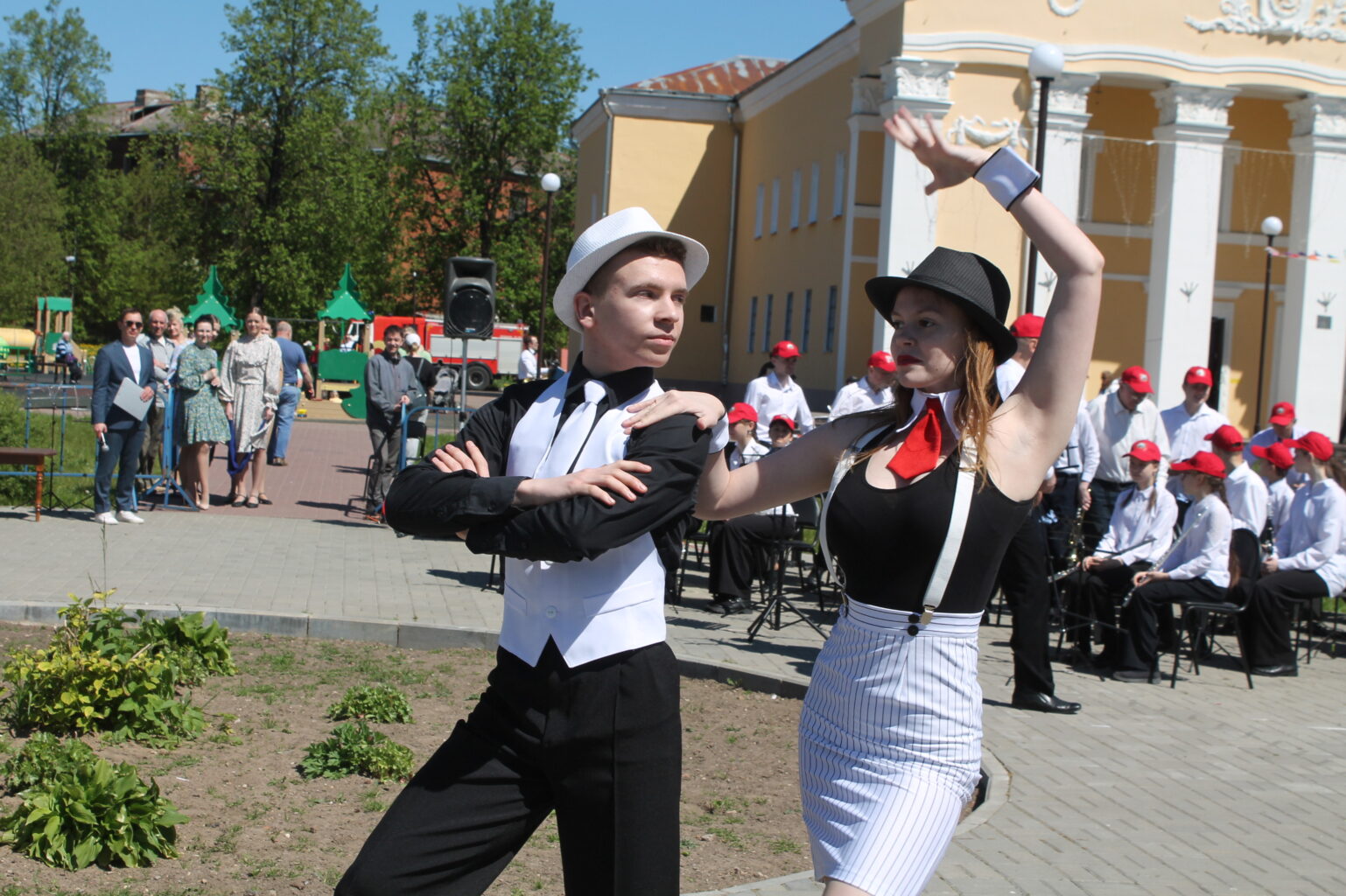 Особое место в концерте заняла танцевальная музыка. И, как доказали необыкновенно нарядные дамы (по-другому не скажешь) из Клуба золотого возраста, танцевать наша публика готова не только вальсы, но и танго, и польку, и едва ли не менуэт. Кстати, сегодня клуб принимал коллег из Смоленска, которые тоже с удовольствием кружились на площадке у Дворца.