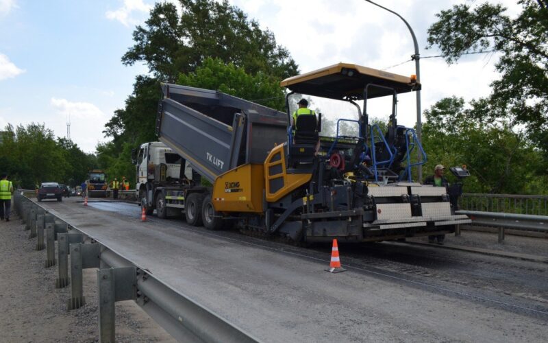 Сначала дорожные строители произвели срез старого покрытия дороги по мосту. После этого рабочие приступили к укладке нового асфальтового покрытия.