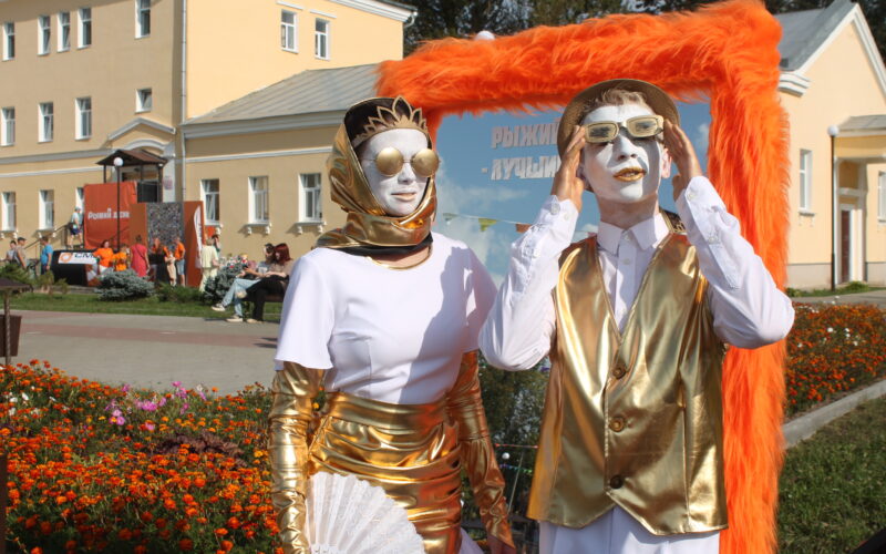 Солнечного рыжего во всех его оттенках здесь вообще было в избытке — начиная от костюмов ведущих и до рамы на зеркале, заглянув в которое, каждый мог убедиться: «Рыжий день — лучший день». Приятно отметить, что и некоторые зрители поддержали концепцию праздника: те или иные «рыжие» элементы одежды то и дело мелькали в праздничной толпе. Мне, например, особенно запомнились две дамы с собачками, которые не только сами нарядились в оранжевое, но и питомцев украсили рыжими бантами. Может быть, в дальнейшем, если фестиваль станет традиционным, стоит поддержать эту тенденцию?