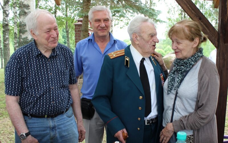 (На снимке: полковник в отставке Фёдор Русанов беседует с дочерью академика Колотыркина Татьяной.)