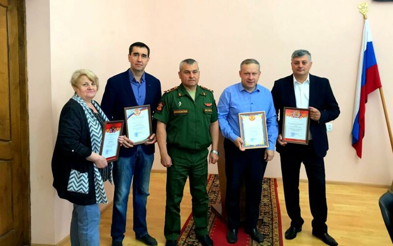 На еженедельном рабочем совещании в районной Администрации военный комиссар города Ярцево, Кардымовского и Ярцевского районов Валерий Митуневич вручил от имени военного комиссара Смоленской области Владимира Рыкалова грамоты за активное участие в совершенствовании базы мобилизационного развертывания военного комиссариата Смоленской области главе Капыревщинского сельского поселения Александру Котову, депутатам Ярцевского районного и городского Советов Сергею Калистратову и Надежде Рыбниковой, начальнику Ярцевской газовой службы ОАО «Газпром газораспределение Смоленск» Алексею Сбудышеву, генеральному директору ООО «Декопласт» Тимуру Усманову и индивидуальному предпринимателю Владимиру Куликову.