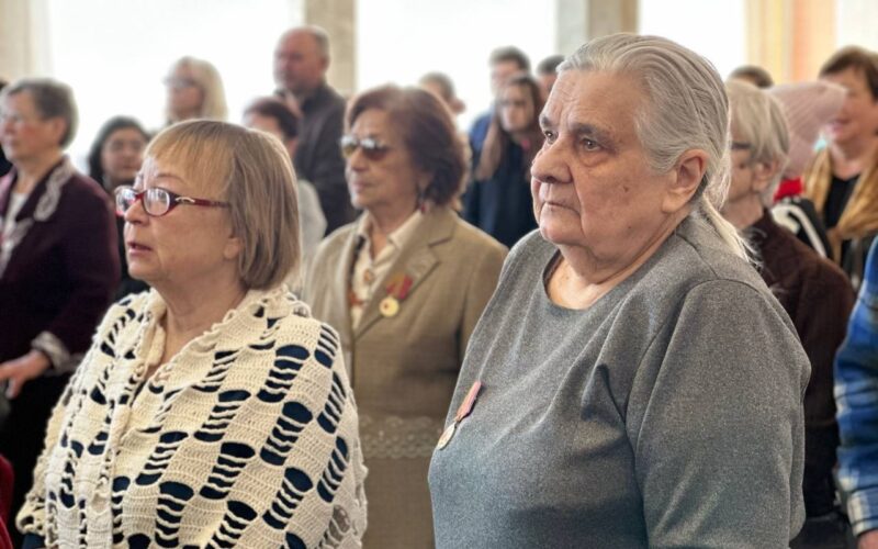 В фойе Дворца собрались те, кто  пережил страшную войну, и те, кто пришел от имени послевоенного поколения выразить им признательность и уважение.