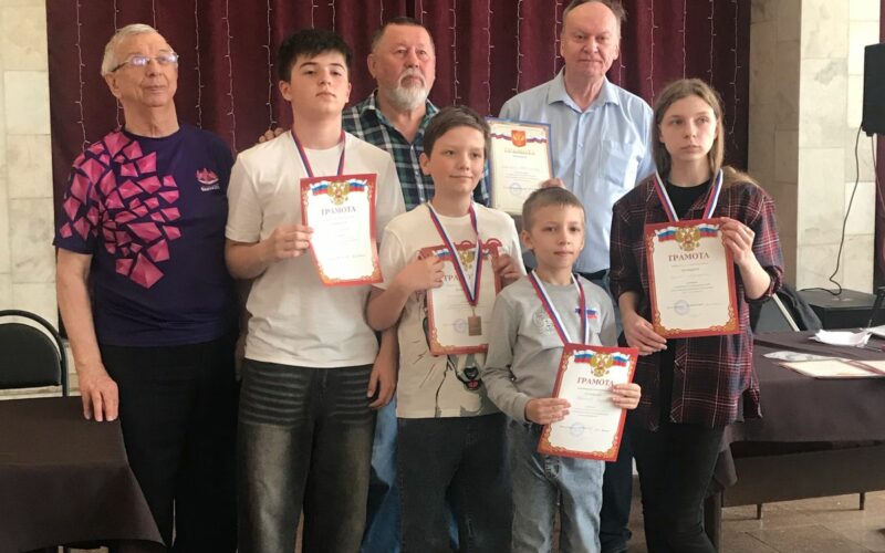 На снимке (слева направо) Ю.Мешков — председатель федерации шахмат Смоленской области, Эфендин Керимов, В.Волонцевич — тренер нашей команды, Макар Бражников, А.Шаламанов — судья соревнований, Ярослав Кузнецов, Маргарита Букова.