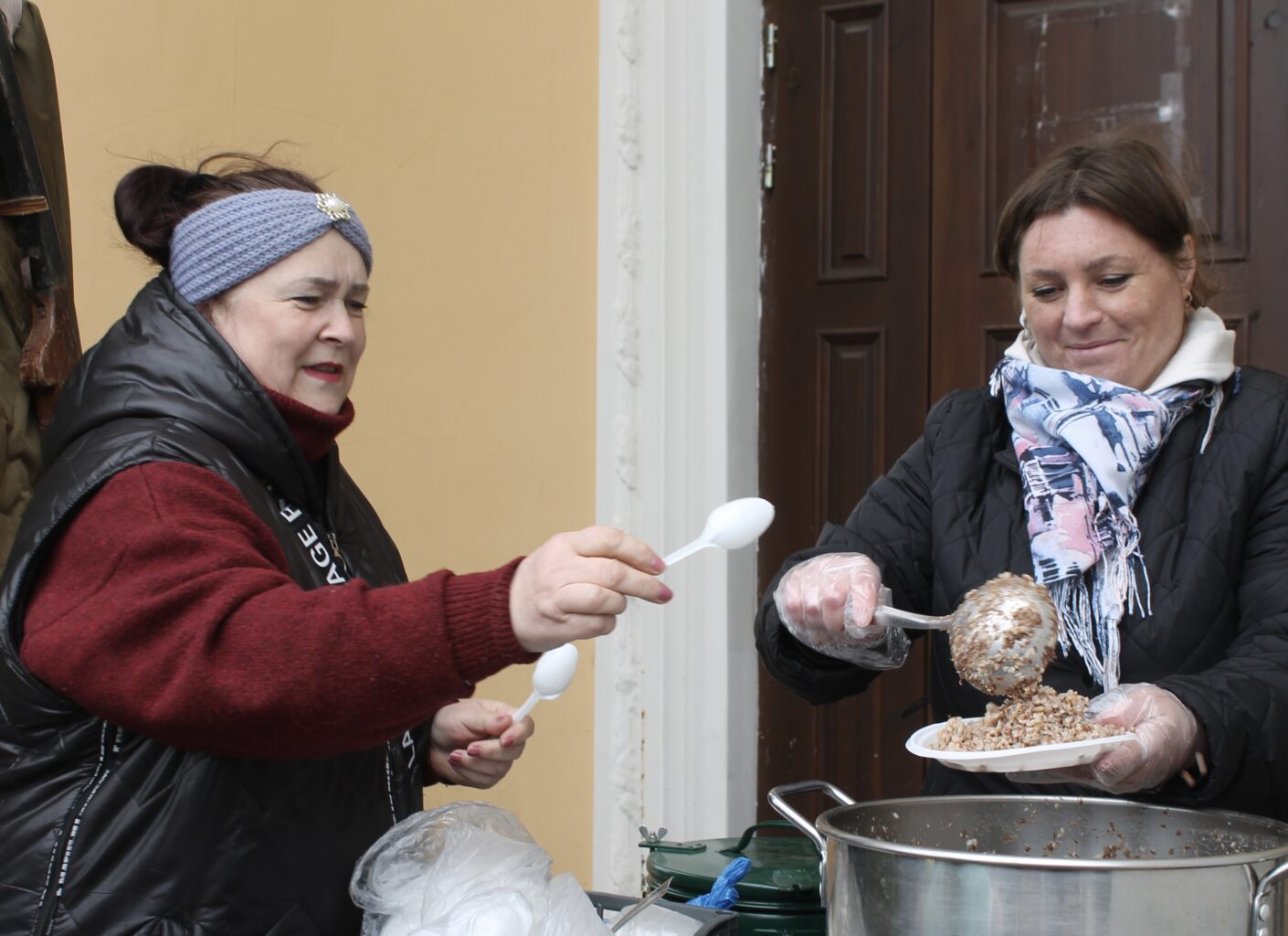 Как и положено на праздниках такого рода, трудилась «полевая кухня». Горячая гречневая каша с мясом была очень кстати в холодный день. А приготовила это традиционное солдатское блюдоЯрцевская фабрика-кухня.