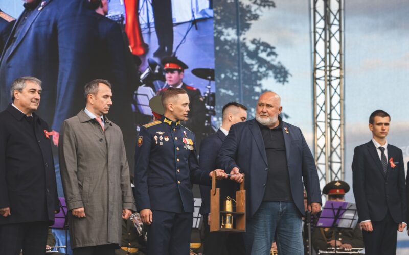 Вечный огонь, частица которого была взята у Музея Победы на Поклонной горе, проделал уникальный многокилометровый путь через всю страну. 24 июня 2025 года он был доставлен на Северный полюс участниками арктической экспедиции на атомном ледоколе «50 лет Победы» в рамках президентской программы «Время Героев». Далее символ памяти побывал на ключевых молодежных форумах страны и был передан городу атомщиков как эстафета от героического прошлого к мирным свершениям настоящего.