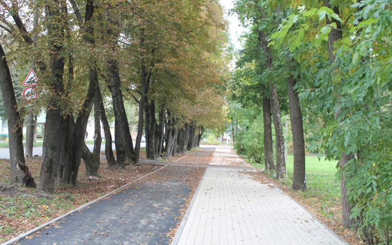 Корреспондент «Вестей Привопья» отправился в парк, пригласив с собой на прогулку заместителя главы Ярцевского муниципального округа — начальника Управления ЖКХ и дорожной деятельности Дмитрия Базуева. Там же на вопросы газеты ответил главный инженер компании-подрядчика Роман Капырин.